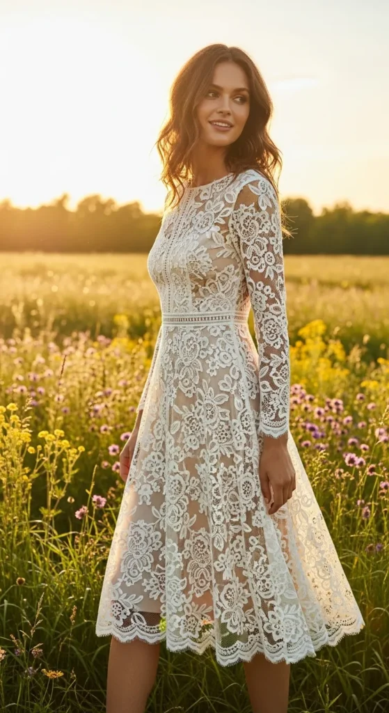 A lace midi dress brings timeless elegance to any bridal shower. The delicate texture instantly elevates your look while remaining airy and wearable for long celebrations.