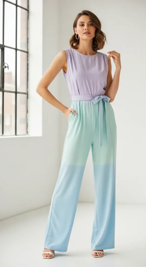 A pastel jumpsuit is ideal for those who want a chic, modern alternative to dresses. Lightweight fabrics keep you cool, while soft colors create a gentle, celebratory vibe that feels perfect for daytime events and summer gatherings inspired by the Summer Sun dress style.