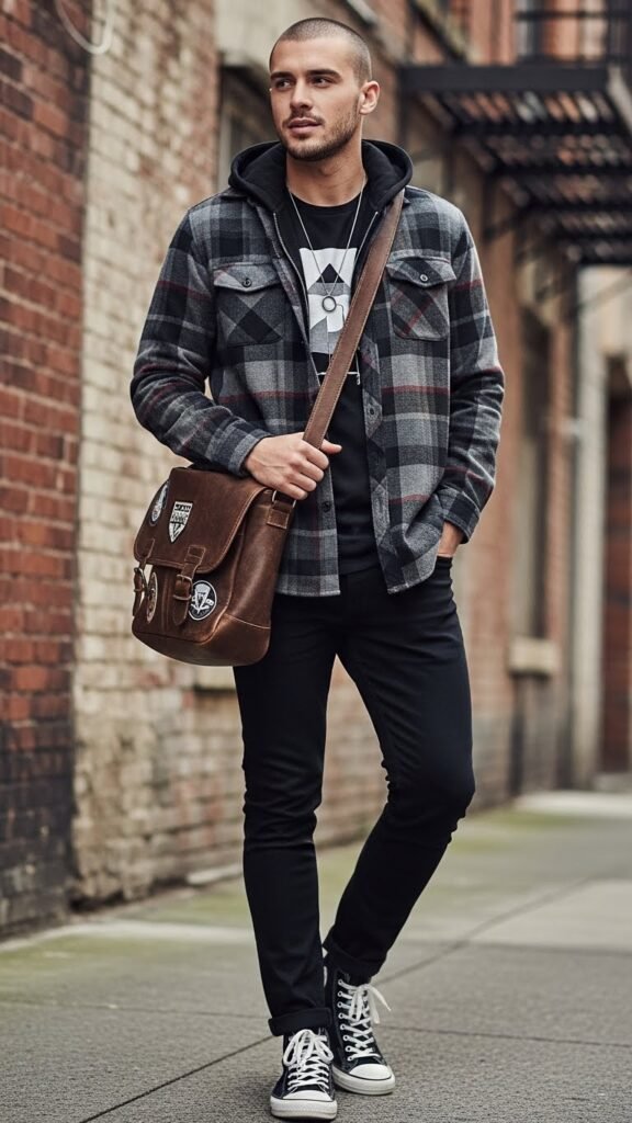 2. Urban Utility: Plaid Overshirt Combo