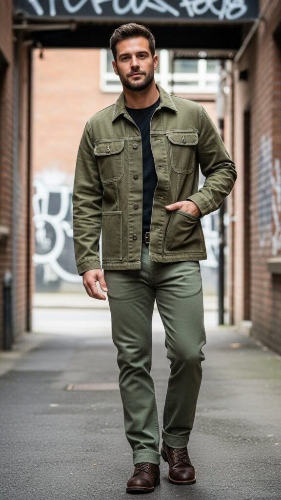 4. Utility Cool: Olive Denim Style