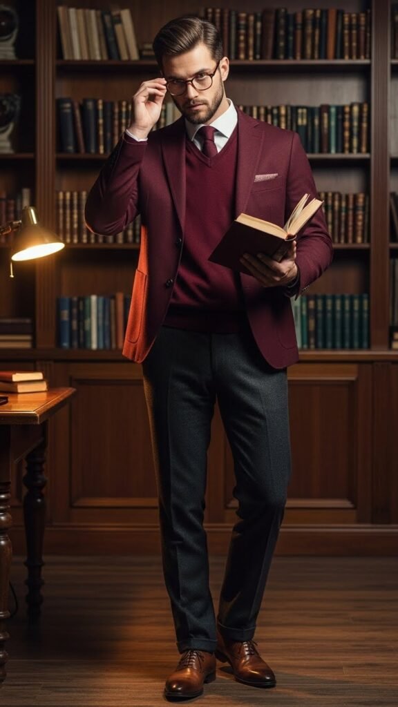 3. Scholarly Sophisticate: Burgundy Layered Look