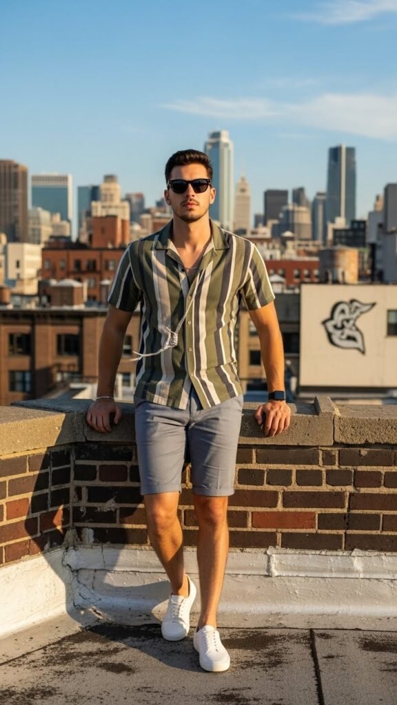 1. Urban Edge: Striped Resort Shirt + Shorts