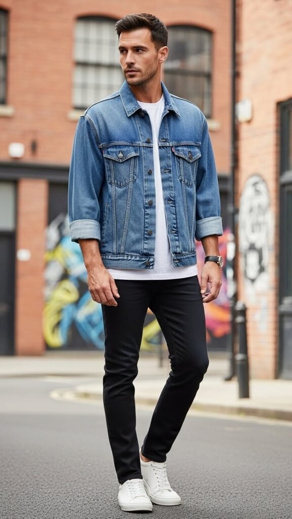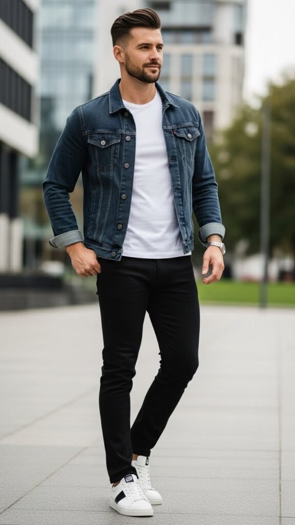 A denim jacket layered over minimal essentials offers a perfect balance of casual and refined. It solves the issue of casual outfits appearing flat by introducing texture and dimension.