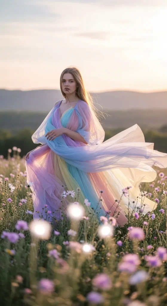 Open meadows inspire softer, more dreamy outfit choices that still need to feel wearable. Ethereal pastel shades blend beautifully with nature while keeping the look light and breathable. This creates a peaceful, well-balanced spring aesthetic.