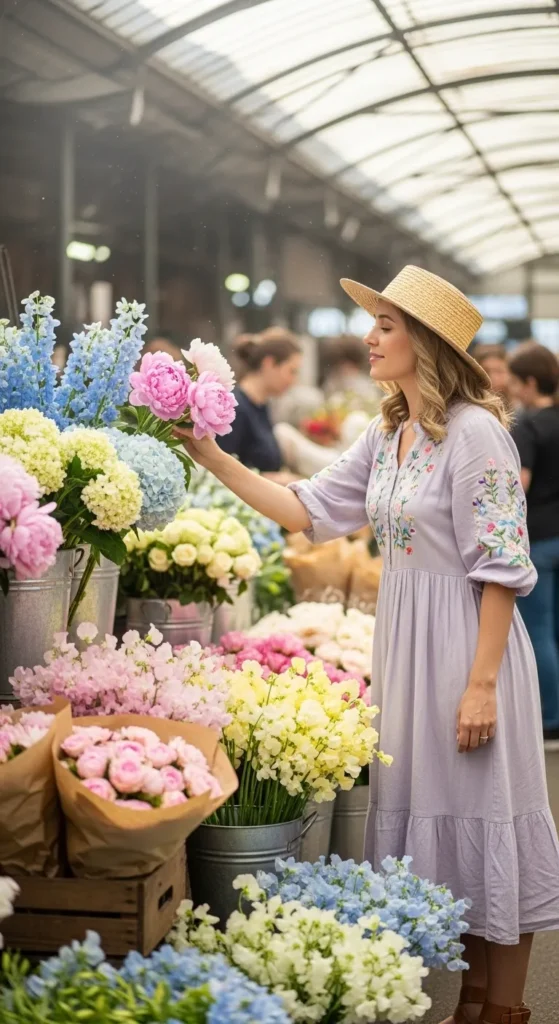A visit to a flower market calls for something fresh and uplifting, yet not too bold. Pastel tones offer a gentle pop of color that feels seasonal and flattering without overwhelming the outfit. This makes getting dressed feel fun instead of complicated.