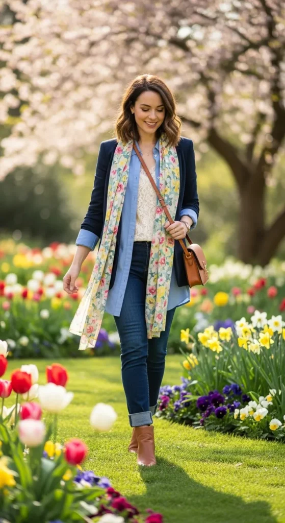 Spring weather often changes throughout the day, so smart layering becomes a must. Classic layers make it easy to stay comfortable while adding a fresh seasonal touch with soft florals. This approach keeps the look balanced, practical, and visually appealing.