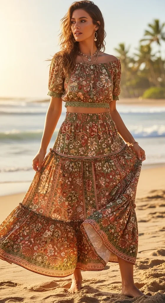 8. Boho Maxi Skirt & Crop Top