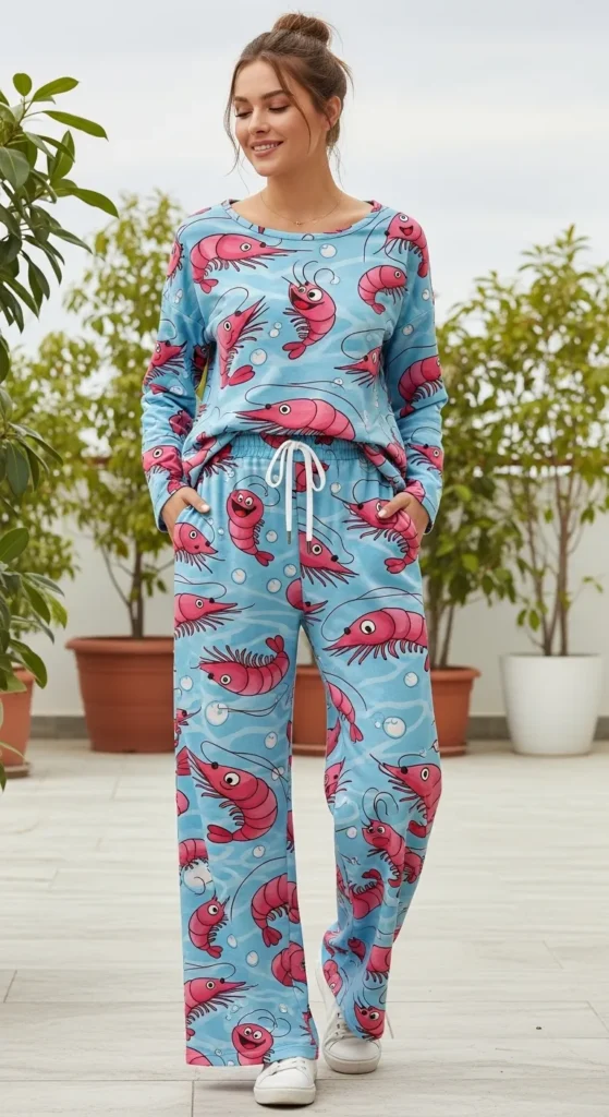 Sometimes summer outfits feel repetitive, especially when you want something fun without looking overstyled. This playful pink shrimp print set solves that by adding personality while staying easy and comfortable for warm days. It’s the kind of summer skirt outfit that works when you want to stand out a little without trying too hard. The matching set takes away styling stress and still gives a fresh, confident summer vibe.