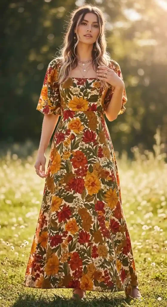 A boho floral square neck dress adds a touch of charm and femininity to your everyday wardrobe. Picture a sunny afternoon picnic where you want to feel relaxed, but still stylish. The square neckline highlights your collarbones, while the floral print gives playful elegance.