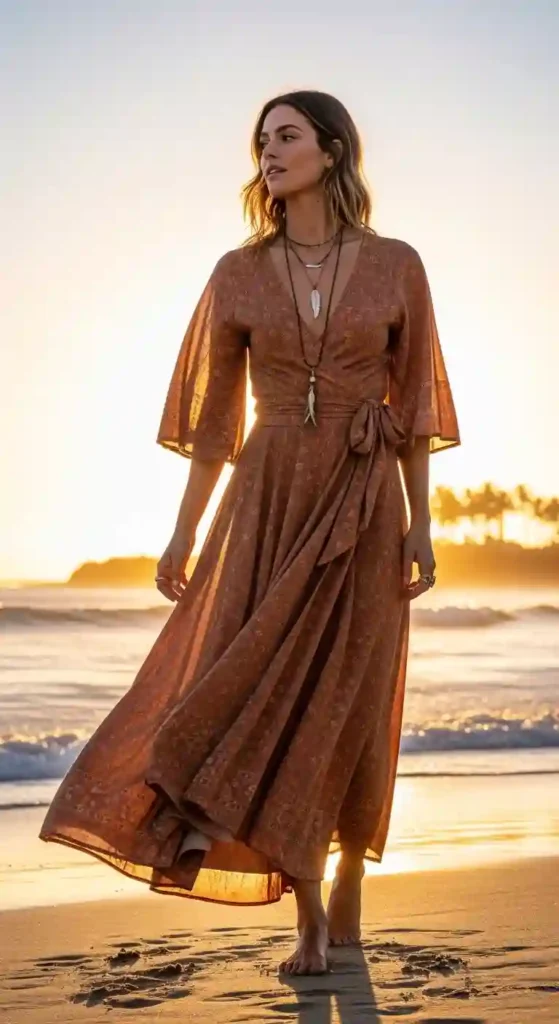 A woman’s casual boho dress is perfect for days when you want to look stylish without trying too hard. Imagine stepping out for a quick coffee run and still getting compliments because your outfit feels relaxed yet beautifully put together. The loose flow and soft patterns give you freedom to move while keeping your vibe effortlessly cool.