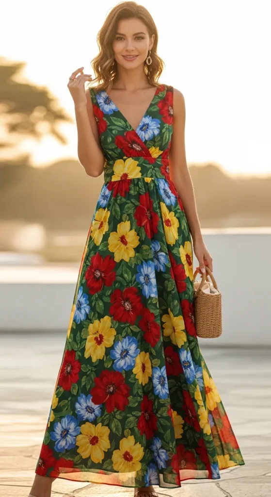 If you find regular maxi dresses too heavy or plain, this style solves that by combining comfort with a breezy, stylish silhouette. Add a straw hat and sandals for a relaxed summer-ready outfit.