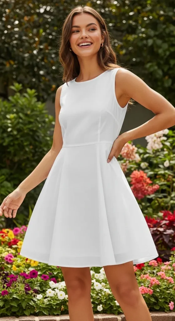 A sleeveless swing mini dress is perfect when you want a playful, cool, and breezy outfit. Imagine a weekend coffee date or a casual stroll in the park; this dress lets you move freely while keeping a feminine silhouette.
